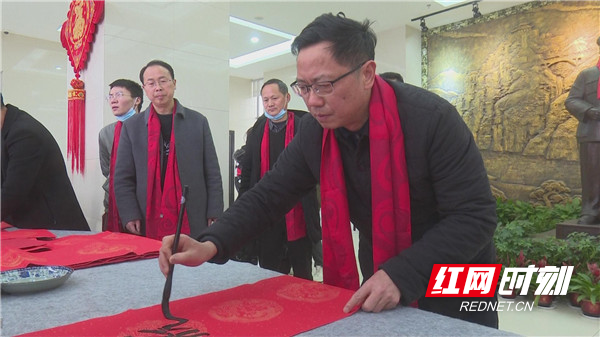 在县火车站广场,书法家们现场挥毫泼墨,写下一幅幅充满喜庆的春联。市民们争相围拢在一起,一边欣赏书法作品、一边挑选着自己喜爱的春联。“我这几年都在这里写的,免费在这里,搞得很好,这个活动搞得可以,有利于慈利文化传承。”市民胡师傅守了很久,终于拿到了属于自己的春联,很开心也很感谢书法家们。