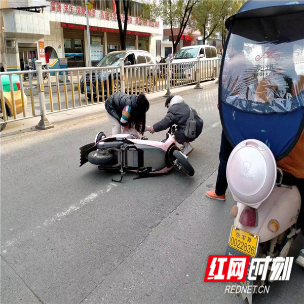 3月12日下午,白公城社区网格员高超、余芳秀在日常巡查至零阳东路段时,突然听到“砰”的一声,循声望去,原来是公路中间一辆电动车与一辆小汽车发生碰撞,致使电动车驾驶员受伤,倒地不起。网格员见状迅速上前询问了解情况,结合车主身体情况和道路交通情况,与热心路人将伤者搀扶到人行道休息,同时与碰撞汽车驾驶人进行沟通,拨打120。