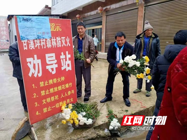 为加强清明期间森林防火和文明祭祀工作,慈利县对假期工作作出具体的安排部署,全面落实网格化管理模式,坚持县级领导包乡镇、乡镇领导包村、村干部包片、党员组长包农户、护林员和群防队伍包山头、坟头、林区,真正做到工作有部署、措施有保障、责任有落实。清明节前后在全县范围内开展了以“文明祭扫、平安清明”为主题的宣传活动,积极引导广大干部群众移风易俗,倡导鲜花祭祖、文明祭祀、生态祭祀,在林区入口、交通要道等醒目位置张贴、粉刷宣传标语,运用村村通广播、宣传车、鸣锣等方式进行广泛宣传,禁止鞭炮、火种、塑料祭祀用品进山。在我县大力倡导文明祭祀的环境下,广大人民群众积极响应,文明祭祀已蔚然成风。据不完全统计,清明期间,全县共购买鲜花305260支,使用资金1055870元,在每个村和重要交通要道都设立了文明祭祀劝导点,实行无死角、全覆盖的无缝管理。近年来,我县民众的祭祀观念发生转变,用鲜花代替烧纸的民众越来越多。