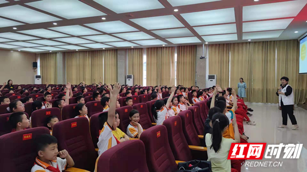讲座中,讲师们向学生解释了“五防”是什么:防性侵、防拐卖、防意外、防灾害、防校园暴力,并结合5·12全国防灾减灾主题,通过观看图片、视频、唱诵读、现场演练等方式,学习了震前预防、震时措施、震后救护等避震自护的常识和技能。讲师们用生动、委婉的授课语言,用适合孩子们的教育方式,有效地将安全知识传递给了全场学生,台下的学生和讲师们热情互动,争先恐后地回答问题,积极谈论并认真学习了安全知识,了解了常见的应对方法,提高了自我保护的意识和自救的能力。