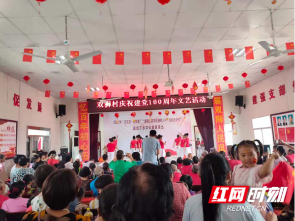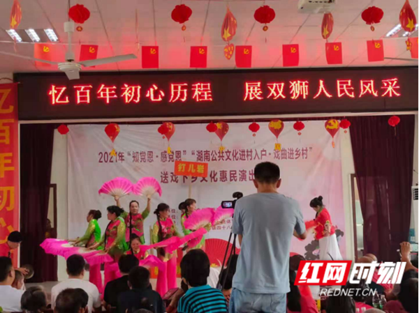 6月29日,广福桥镇双狮村委会举办庆祝中国共产党成立100周年文艺演出。