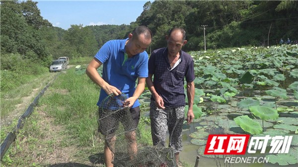 “我这200多亩塘现在都是以食用藕和茭白来代替田里的草,正好茭白和藕又是一份收入,也正好和龙虾的生活习性两个互补。”吴新建告诉记者,在长沙工作时看见每到夏天,小龙虾加冰镇啤酒成了大家降温解暑的好宵夜,感觉这是个好商机。回乡后,开始利用家乡良好的泉水资源、生态环境来筹划龙虾养殖的事。2018年,他花了70多万元把150亩小龙虾养殖基地全部改造完后,从中国龙虾之都江苏盱眙引进48万尾小龙虾苗种投放到虾池里。