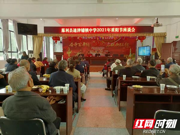 10月14日,慈利县通津铺镇中学召开2021年重阳节座谈会,退休教师们重返校园,欢聚一堂共度重阳佳节。