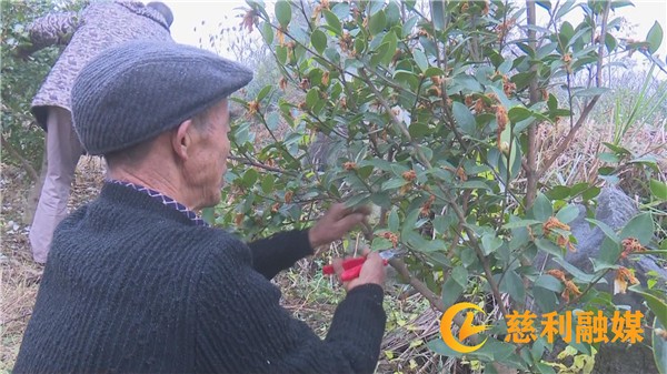 “油茶修剪整形,这个是非常重要的,它一往上长,就压到这个侧枝的生长,所以我们要消除它的顶端优势,让侧枝生长、多结果。”12月15日,在零阳镇水汪村油茶基地,记者看见,100多亩的油茶树长得郁郁葱葱,开满了茶花,县林业局的育苗专家正为老百姓培训,指导他们如何培育出好的油茶树。