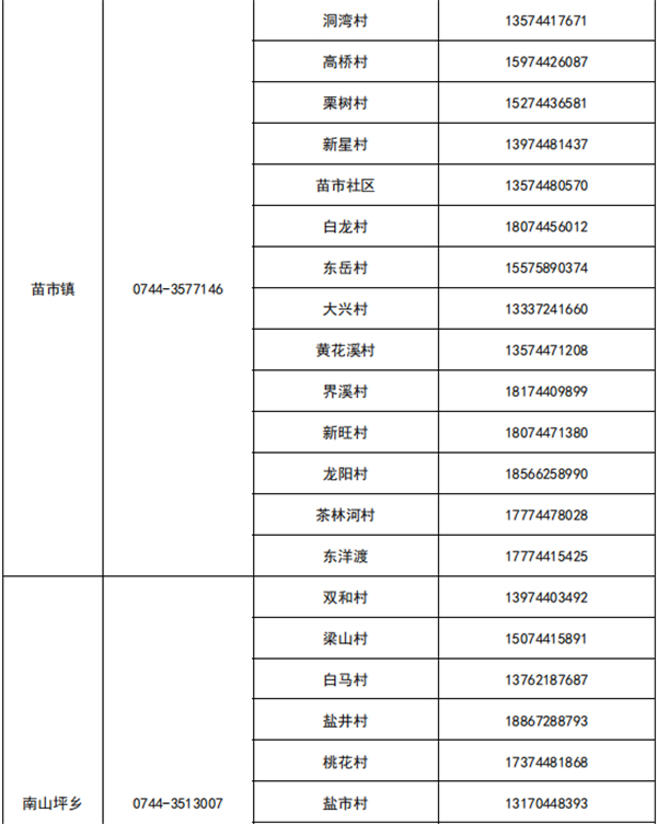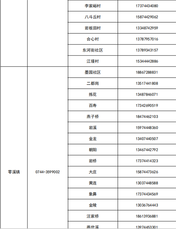 慈利县各乡镇街道、社区(村)自主报备和健康码资讯服务电话公示表.xlsx