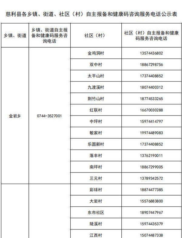 关于对慈利县各乡镇街道、社区(村)自主报备和健康码资讯服务电话进行公示的通知