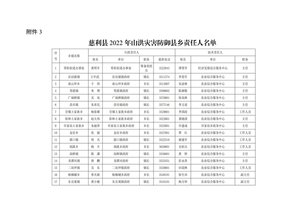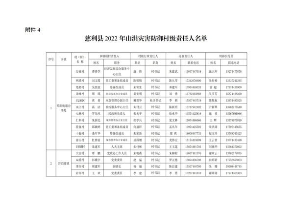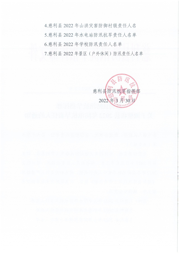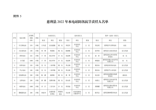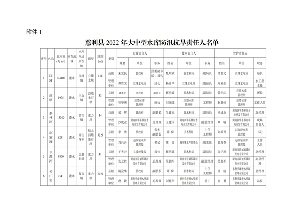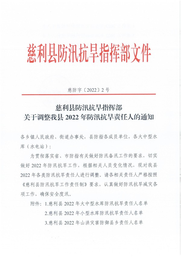 (慈防字【2022】2号)关于调整慈利县2022年防汛抗旱责任人的通知