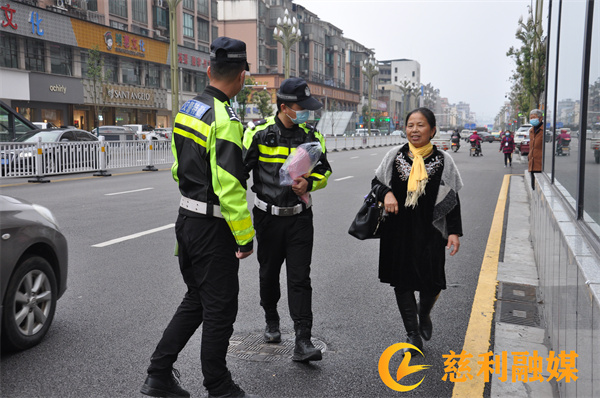 “那位穿蓝衣服的小姐姐,过马路要走斑马线哦。”“阿姨,请不要走在机动车道上,很危险,您得走旁边的人行道!”执勤交警对行人不按规定道路行走的,进行文明劝导及宣传教育。
