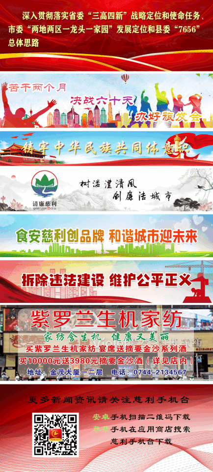 会议要求,要做好干部群众思想工作,做好正面引导。要对标对表补短板、强弱项,抓住机遇,把政策吃懂弄通做实,谋划好项目前期工作,积极向上对接,借旅发大会的东风,争取更大支持;要紧扣时间节点,加大力度,加快未完成项目的建设进度,向党的二十大和首届湖南旅游发展大会召开献礼;要继续做好首届湖南旅发大会的各项筹备工作,及时调度对接,确保各项筹备工作正常运转;要严控聚集性活动,坚决守住疫情防控、安全生产、防旱抗旱、森林防火等工作底线,围绕“办会兴城”促发展,以点带面,让工作提质增效;要统筹做好县域经济发展工作,展示慈利县的担当,让县域经济发展工作迎头赶上。