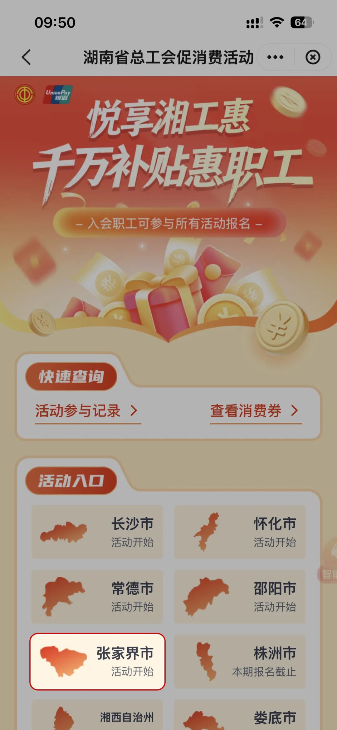 参与对象:已完成云闪付APP实名认证的湖南省工会会员