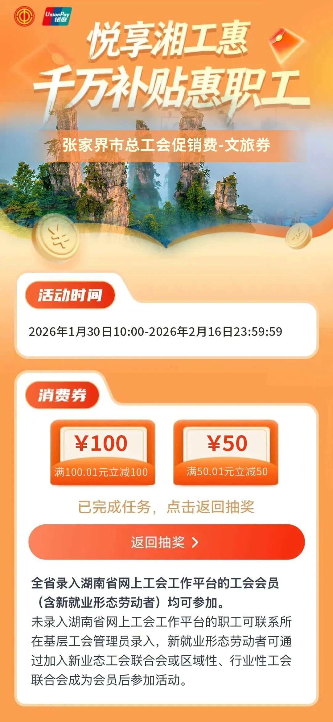 快来抽奖!张家界工会文旅促消费活动上新啦!
