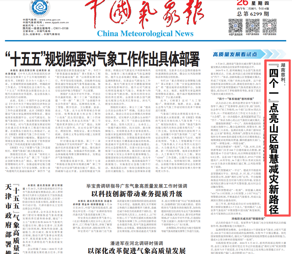 2024年6月,慈利被确定为全国气象高质量发展试点。目前,慈利县已成功探索智慧减灾“四个一”体系,创新构建山区智慧减灾模式,形成了可复制、可推广的标志性成果。这个曾因地形复杂而频发山洪、滑坡危害的地方,如今依托中国气象局智慧减灾气象高质量发展试点建设,成功应对了多轮强降雨考验,彰显了基层气象防震减灾的担当。