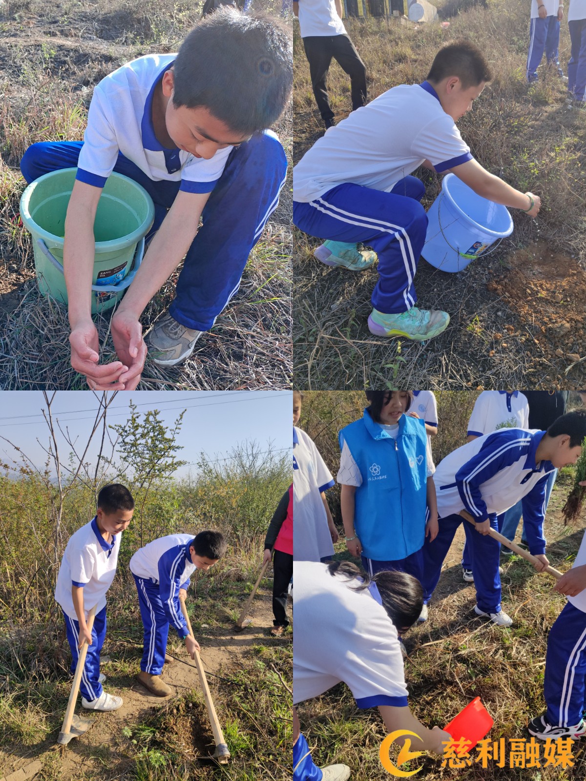 植树现场大家热情高涨、分工协作,各项工序有条不紊。两三人一组,寻地挖坑、栽植树苗、挥动铁锹、扶苗培土、提水浇灌,相互之间配合默契,干劲十足,一派热火朝天的劳动景象。学生代表们也手持铁锹,干劲十足,小心翼翼地将小树苗放进树坑,培土、浇水,每一个环节都一丝不苟。同学们纷纷表示在此次活动中亲身体验了劳动的快乐,学会了合作互助,脸上洋溢着灿烂的笑容。