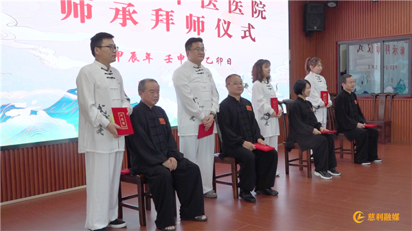 在师承拜师仪式上,五名拜师继承人现场行拜师礼,表明继承师父学术思想和技术专长、传承国粹和发展中医的决心。