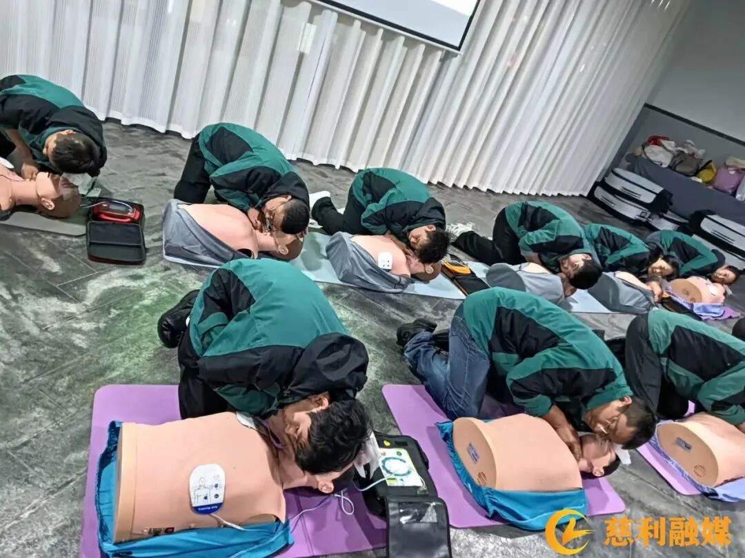 课程内容聚焦安全生产、职业健康、工伤预防、应急救护等知识,通过实操指导提升参训人员的应急处置能力。其中实操环节重点强化心肺复苏标准化流程训练,同步开展自动体外除颤仪使用教学。从操作步骤演示到分组实操演练,全程由培训师纠错指导,确保每位参训人员都能熟练掌握关键急救技能,真正做到“懂知识、会操作”。参训人员经理论考核与实操评估合格后,将统一颁发《湖南省红十字会初级救护员证》。