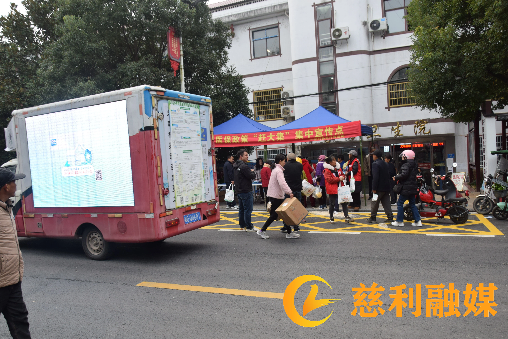 在现场看到,卫生院门口的集中宣传阵地已布置妥当:醒目的政策宣传展板一字排开,上面用简洁明了的文字和图表,清晰标注着2026年医保参保缴费标准、缴费时限、报销比例、异地就医备案流程等核心内容;视频车循环播放着医保政策解读短片,通俗易懂的配音让老年群众也能轻松听懂;音频车则穿梭在乡域主干道,将参保提醒和政策亮点传遍街头巷尾。
