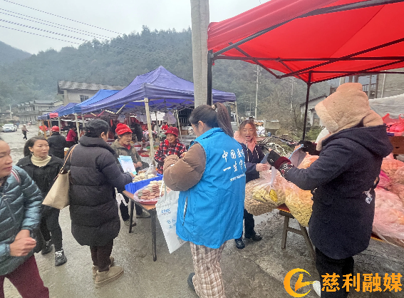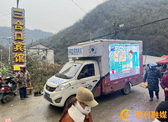 当日清晨,三合口村文化广场已热闹起来。红色宣传横幅醒目悬挂,政策展板整齐排列,工作人员迅速搭建起宣传服务台,将印有缴费流程、报销比例的宣传册、便民围裙和二维码卡片整齐摆放,让村民一靠近就能清晰了解核心信息。考虑到赶集的地方人员更加集中,此次宣传特意采用“固定点位+农贸市场流动宣传+视频宣传车巡回”三模式,确保政策覆盖无死角。